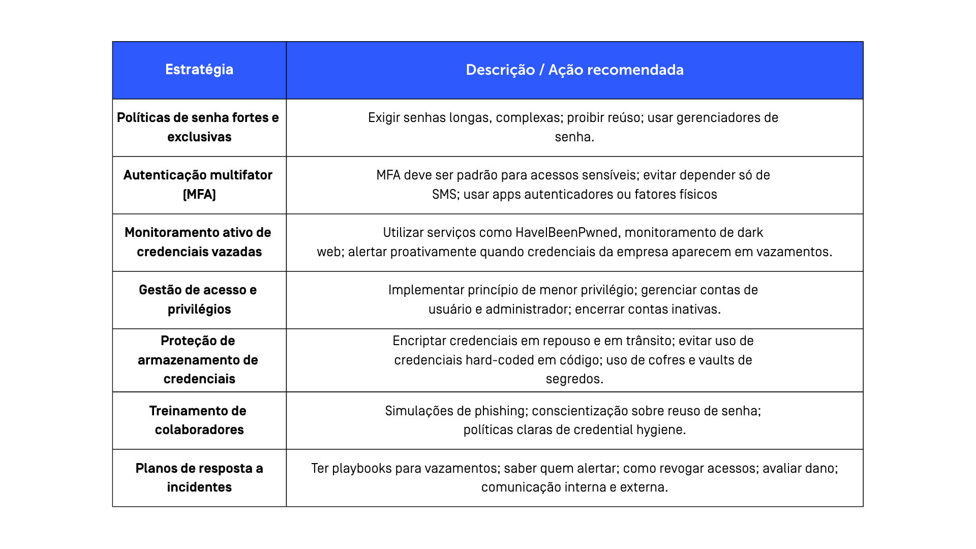 consistente, monitore suas credenciais vazadas e eduque sua equipe.